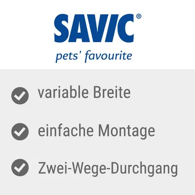 Den Dog Barrier von Savic gibt es in zwei unterschiedlichen Höhen, 75 cm oder 107 cm. Das Gitter ist ausziehbar und kann Durchgänge von 75 - 84 cm versperren. Sollten Sie einen grösseren Durchgang absperren müssen, können Sie das Absperrgitter mit bis zu vier Verlängerungen eine maximale Breite von 112 cm erreichen.