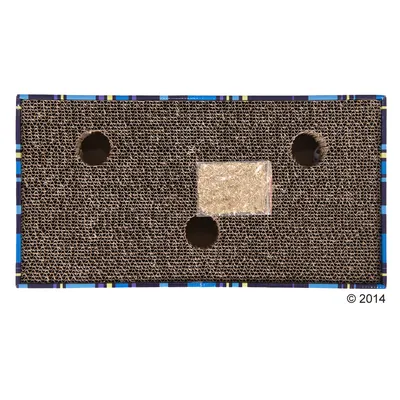 Kratzbrett und Geschicklichkeitstraining für Katzen in Einem, Oberseite aus Wellkarton zum Kratzen, zwei Kugeln mit Glöckchen im Inneren, mit verschiedenen Öffnungen zum Fischen & Pföteln, Farbe: bunt
